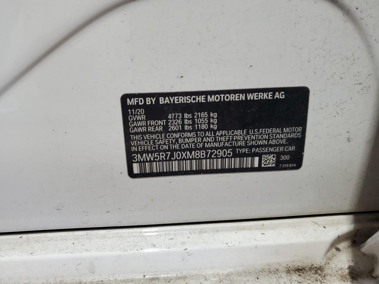 2021 BMW 3 SERIES - 3MW5R7J0XM8B72905, колір - Білий, 2.0, Бензин, Повний привід із США