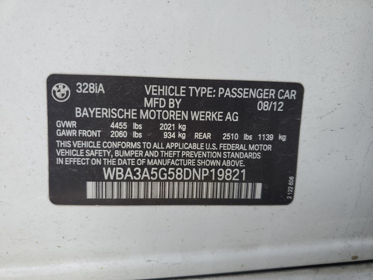 2013 BMW 3 SERIES - WBA3A5G58DNP19821, колір - Білий, 2.0, Бензин, Задній привід із США