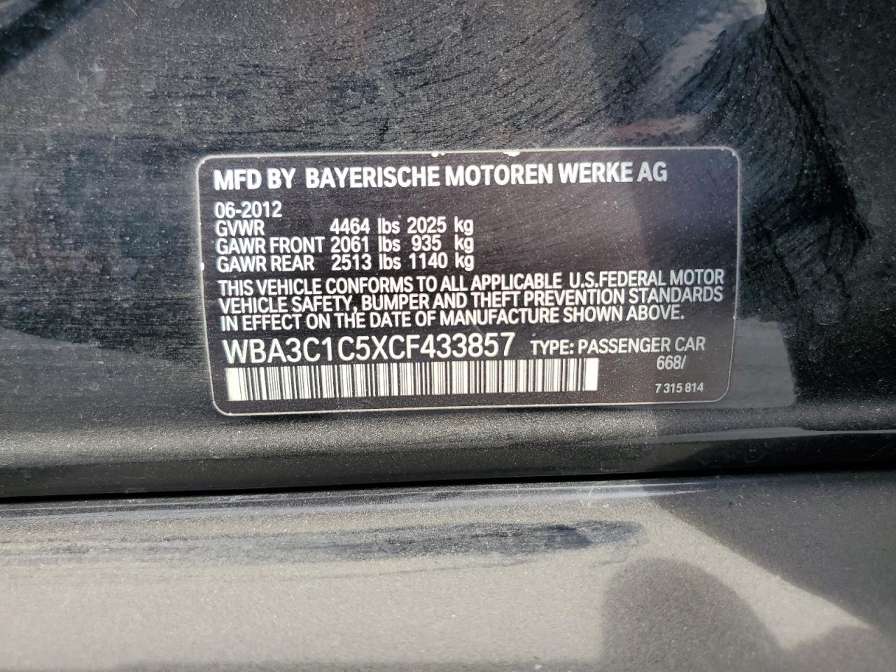 2012 BMW 3 SERIES - WBA3C1C5XCF433857, колір - Чорний, 2.0, Бензин, Задній привід із США