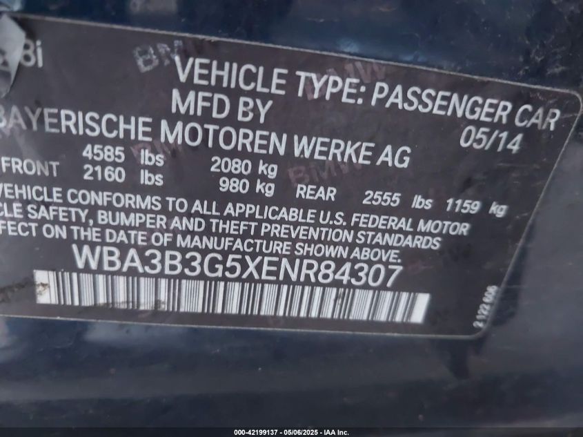 2014 BMW 3 SERIES - WBA3B3G5XENR84307, колір - Чорний, 2.0, Бензин, Повний привід із США