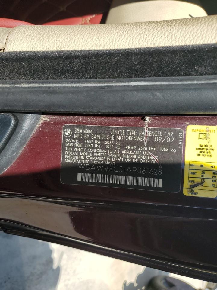 2010 BMW 3 SERIES - WBAWV5C51AP081628, колір - Бордовий, 3.0, Бензин, Повний привід із США