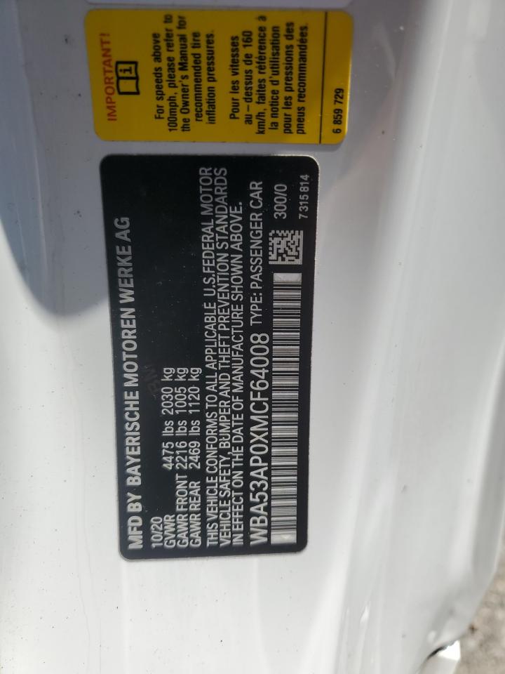 2021 BMW 4 SERIES - WBA53AP0XMCF64008, колір - Білий, 2.0, Бензин, Задній привід із США
