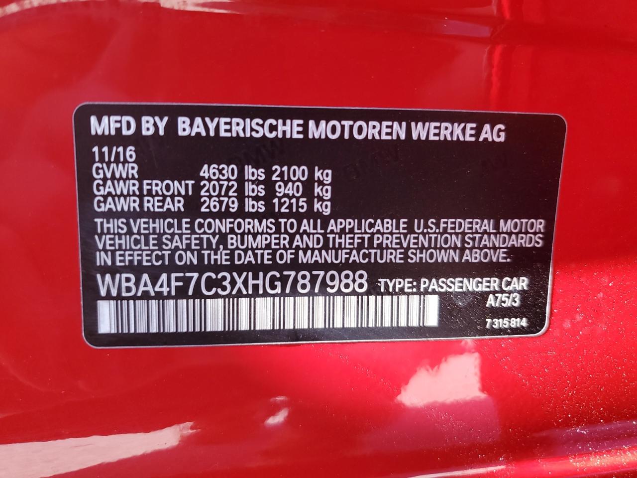 Колір ЧервонийЦиліндри 4Привід Задній привідVIN WBA4F7C3XHG787988Стан НевідомоУшкодження НезначніДата аукціона 2025-10-07