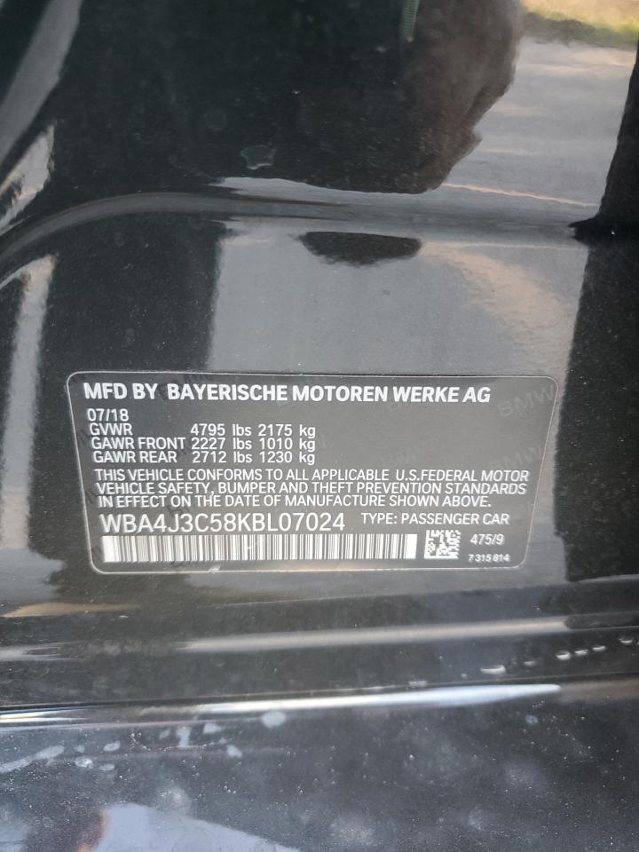 2019 BMW 4 SERIES GRAN COUPE - WBA4J3C58KBL07024, колір - Чорний, 2.0, Бензин, Повний привід із США