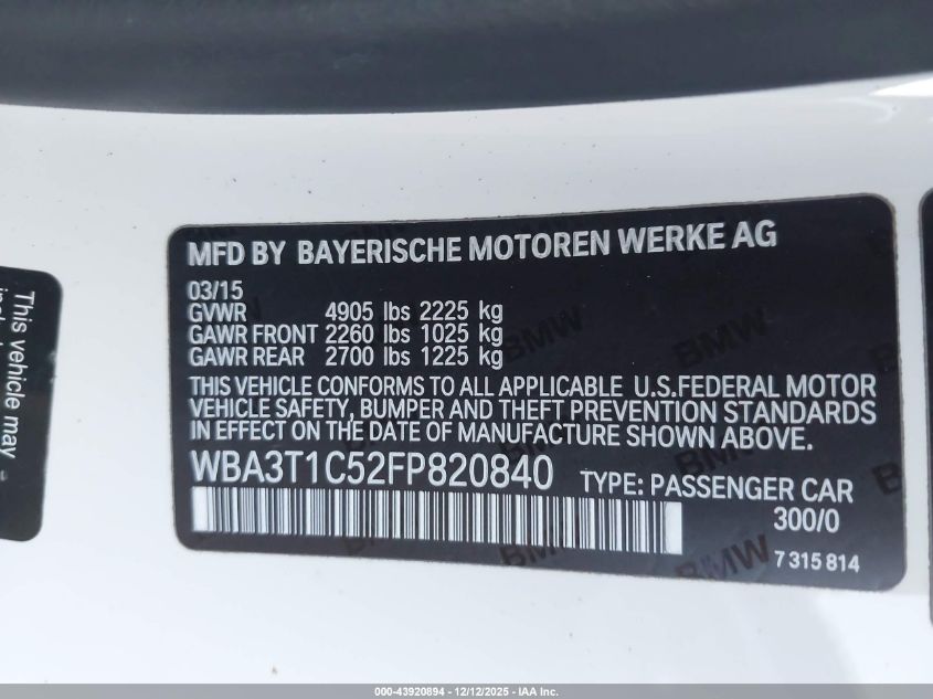 2015 BMW 4 SERIES - WBA3T1C52FP820840, колір - Білий, 2.0, Бензин, Повний привід із США