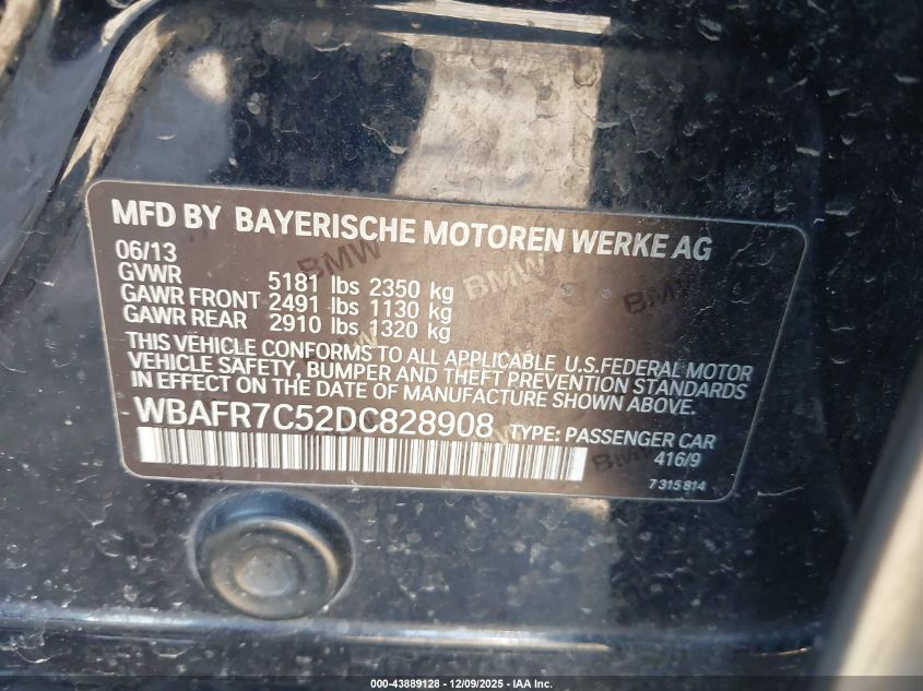 2013 BMW 5 SERIES - WBAFR7C52DC828908, колір - Синій, 3.0, Бензин, Задній привід із США