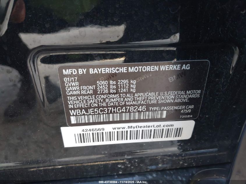 2017 BMW 5 SERIES - WBAJE5C37HG478246, колір - Чорний, 3.0, Бензин, Задній привід із США