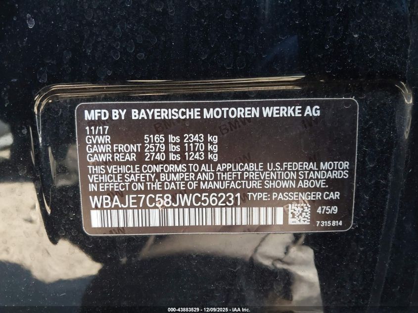 2018 BMW 5 SERIES - WBAJE7C58JWC56231, колір - Чорний, 3.0, Бензин, Повний привід із США