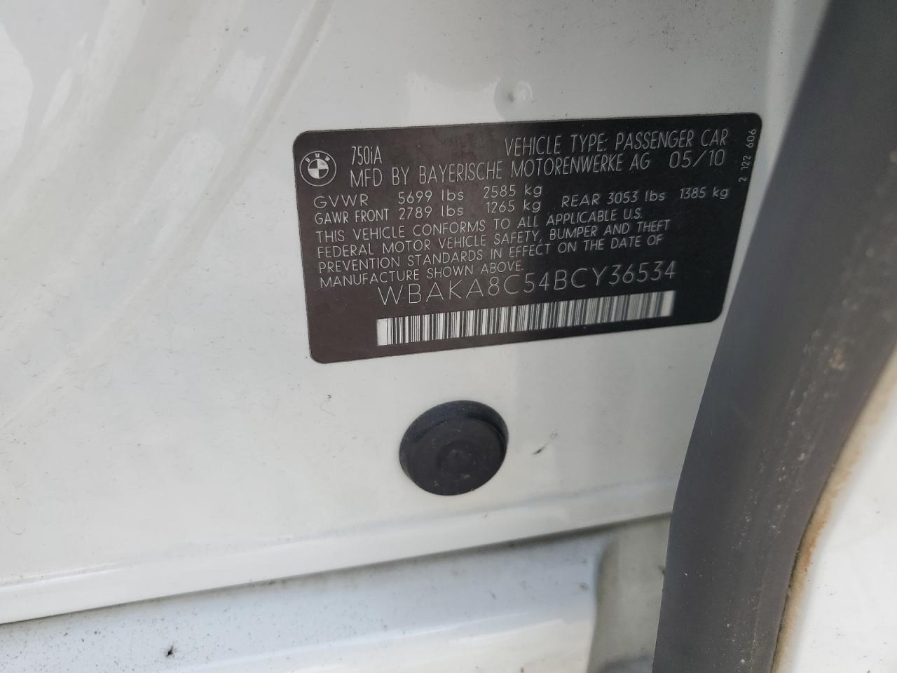 2011 BMW 7 SERIES - WBAKA8C54BCY36534, колір - Білий, 4.4, Бензин, Задній привід із США