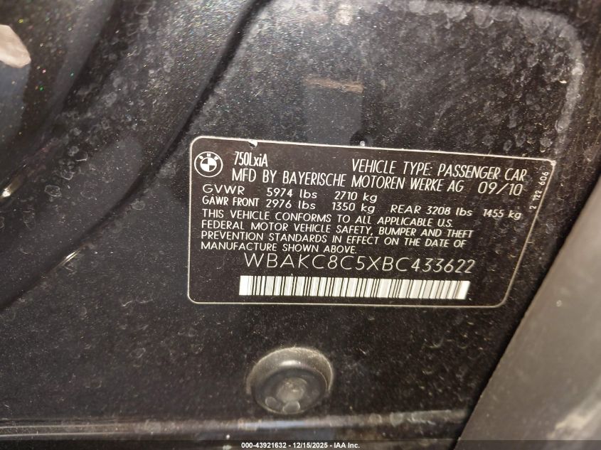 2011 BMW 7 SERIES - WBAKC8C5XBC433622, колір - Чорний, 4.4, Бензин, Повний привід із США
