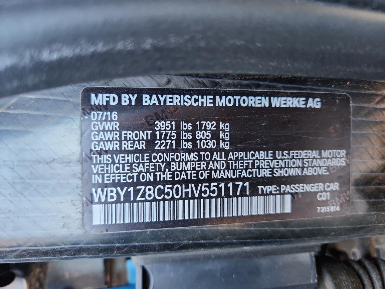2017 BMW I3 - WBY1Z8C50HV551171, колір - Синій, 0.7, Гібрид, Задній привід із США