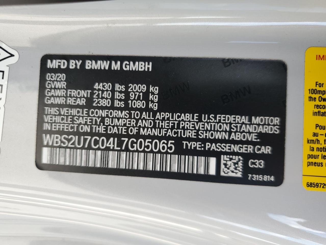 2020 BMW M2 - WBS2U7C04L7G05065, колір - Білий, 3.0, Бензин, Задній привід із США