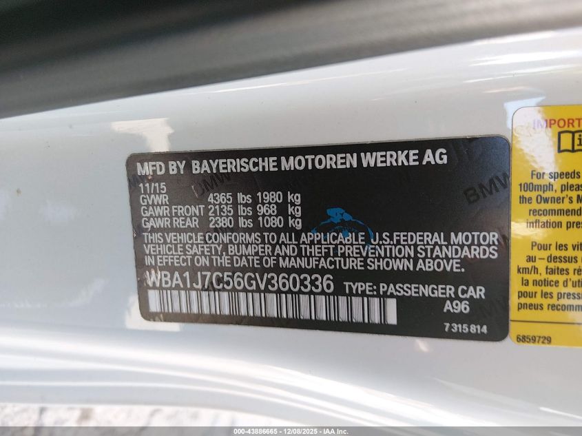 Колір БілийЦиліндри 6Привід Задній привідVIN WBA1J7C56GV360336Стан Заводиться та їде (перевірено)Ушкодження Передня або задня