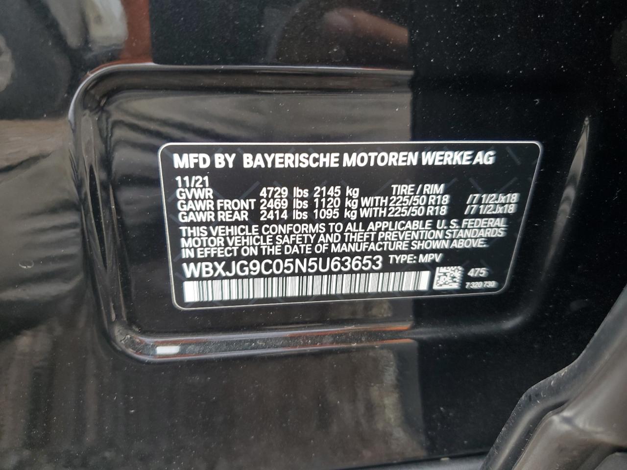 2022 BMW X1 - WBXJG9C05N5U63653, колір - Чорний, 2.0, Бензин, Повний привід із США