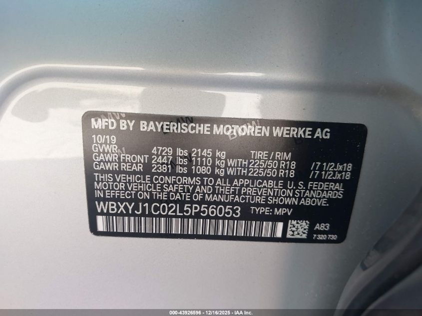 2020 BMW X2 - WBXYJ1C02L5P56053, колір - , 2.0, Бензин, Повний привід із США