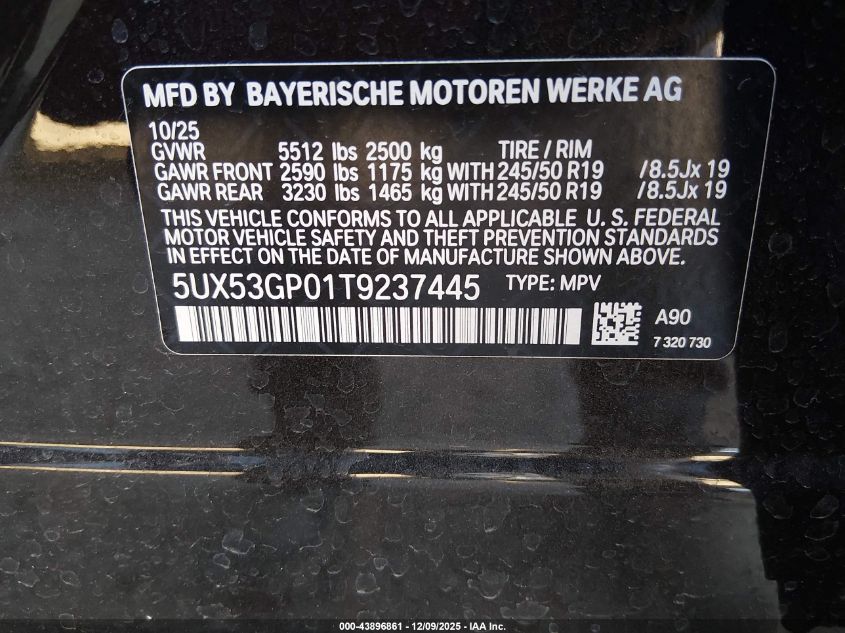 2026 BMW X3 - 5UX53GP01T9237445, колір - Чорний, 2.0, Бензин, Повний привід із США