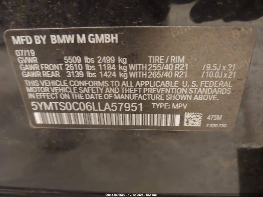 2020 BMW X3 M - 5YMTS0C06LLA57951, колір - Чорний, 3.0, Бензин, Повний привід із США