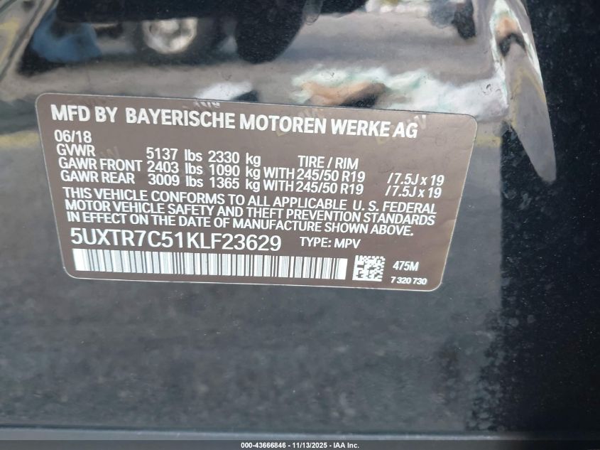 2019 BMW X3 - 5UXTR7C51KLF23629, колір - Чорний, 2.0, Бензин, із США