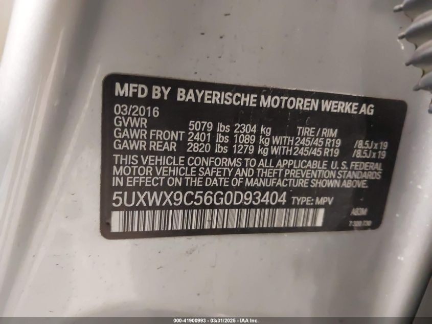 2016 BMW X3 - 5UXWX9C56G0D93404, колір - Срібний, 2.0, Бензин, Повний привід із США