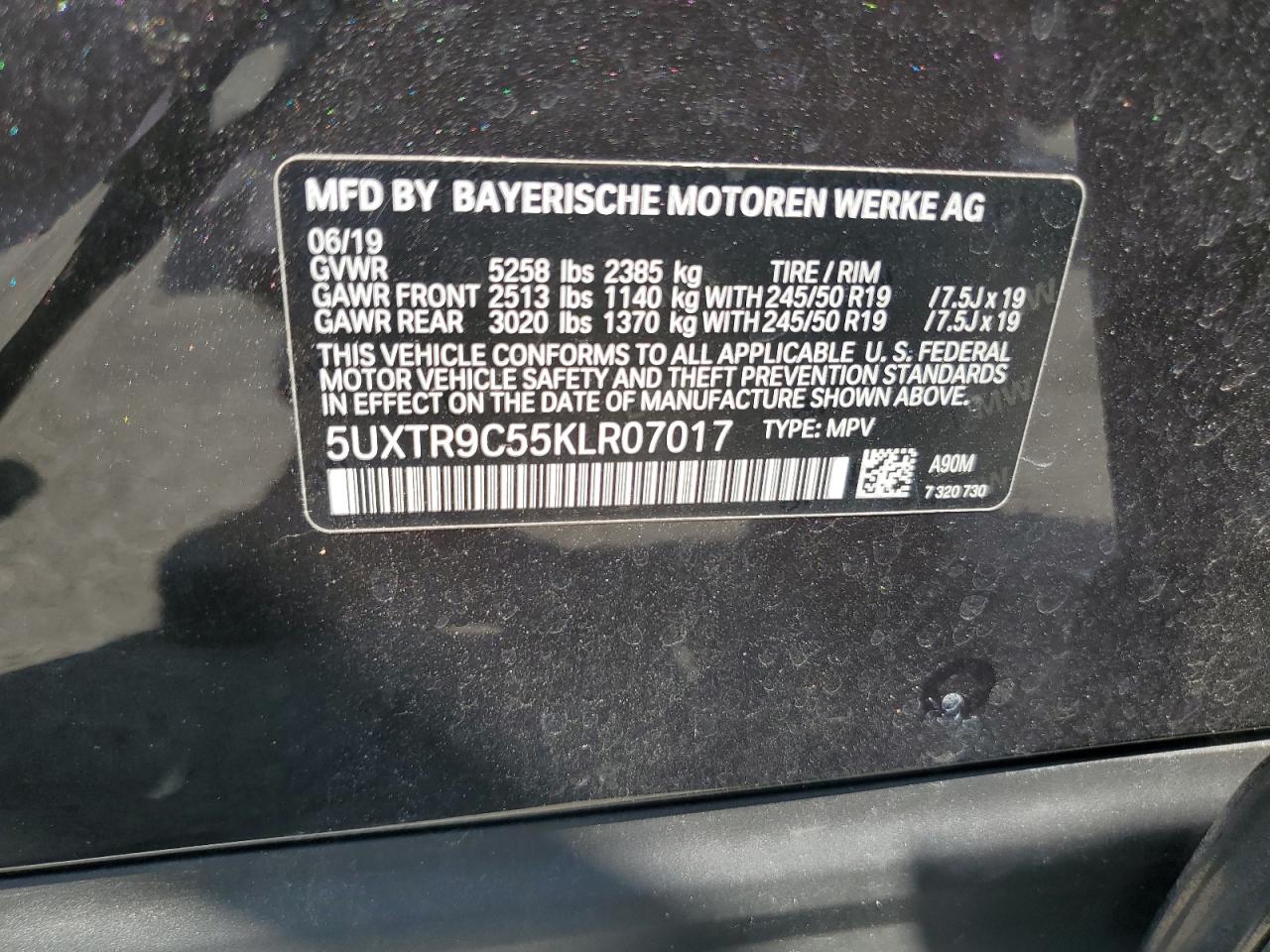 2019 BMW X3 - 5UXTR9C55KLR07017, колір - Деревне вугілля, 2.0, Бензин, Повний привід із США