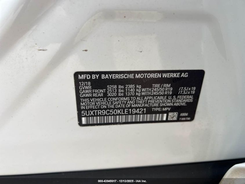 2019 BMW X3 - 5UXTR9C50KLE19421, колір - Білий, 2.0, Бензин, Повний привід із США