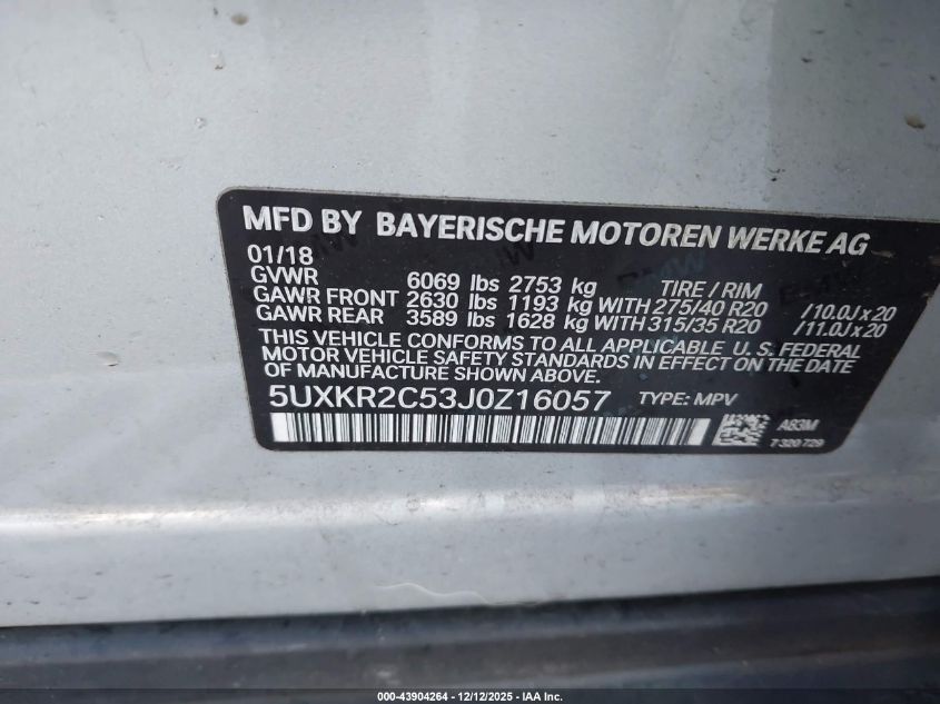 Колір СрібнийЦиліндри 6VIN 5UXKR2C53J0Z16057Стан Заводиться та їде (перевірено)Ушкодження Передня або задня