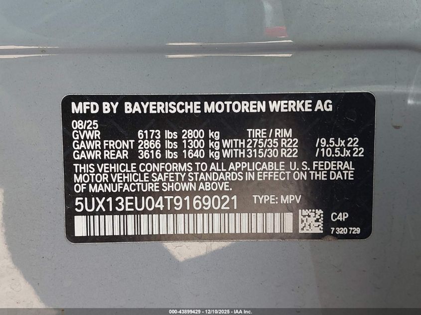 2026 BMW X5 - 5UX13EU04T9169021, колір - Сірий, 3.0, Бензин, із США