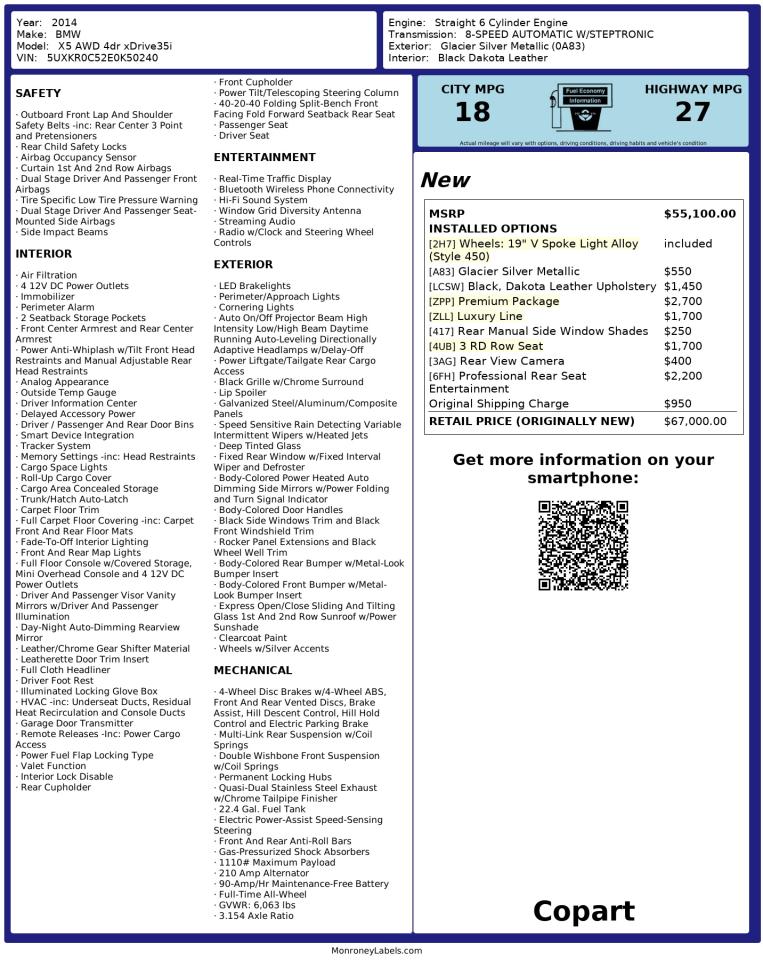 Колір СрібнийЦиліндри 6Привід Повний привідVIN 5UXKR0C52E0K50240Стан Заводиться та їде (перевірено)Ушкодження НезначніДата аукціона 2025-10-07