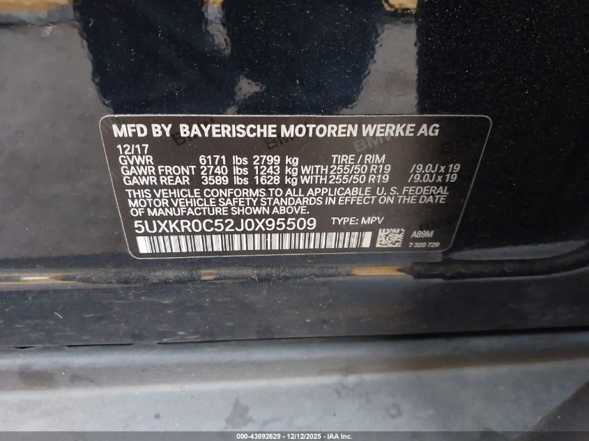 Колір СинійЦиліндри 6Привід Повний привідVIN 5UXKR0C52J0X95509Стан Заводиться та їде (перевірено)Ушкодження Передня або задня