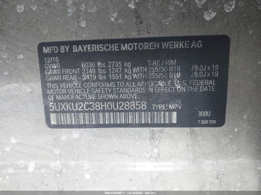 Колір БілийЦиліндри 6Привід Повний привідVIN 5UXKU2C38H0U28858Стан СтаціонарноУшкодження Пожежа