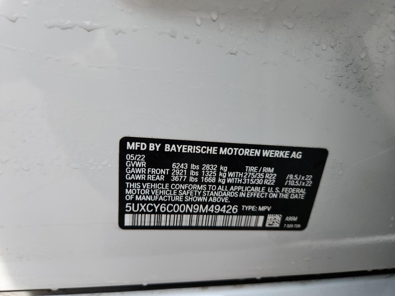 2022 BMW X6 - 5UXCY6C00N9M49426, колір - Білий, 3.0, Бензин, Повний привід із США