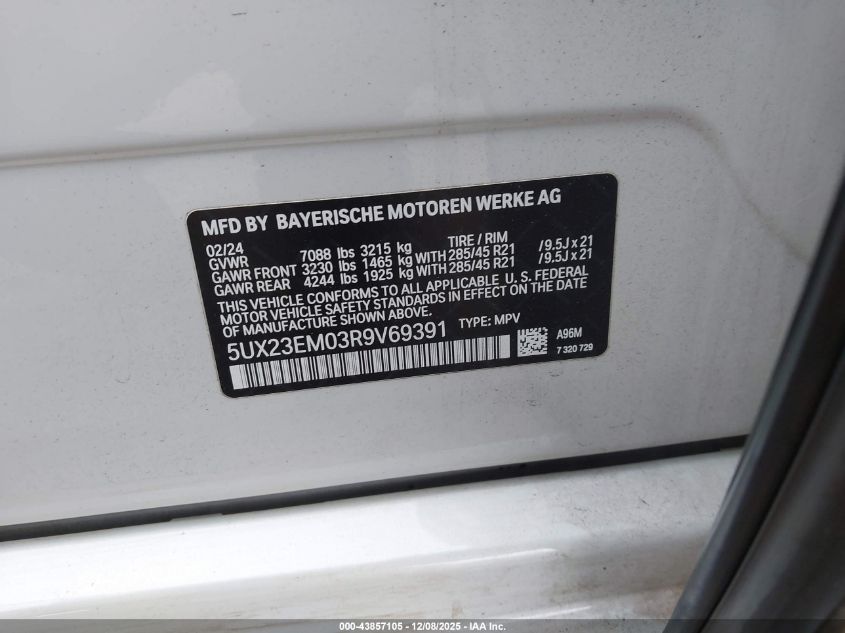 2024 BMW X7 - 5UX23EM03R9V69391, колір - Білий, 3.0, Бензин, Повний привід із США