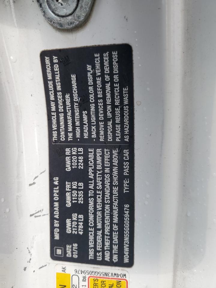 2016 BUICK CASCADA - W04WV3N55GG059476, колір - Білий, 1.6, Бензин, із США