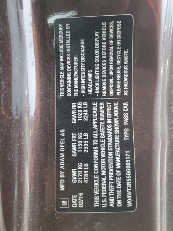 2016 BUICK CASCADA - W04WT3N55GG065171, колір - Коричневий, 1.6, Бензин, із США