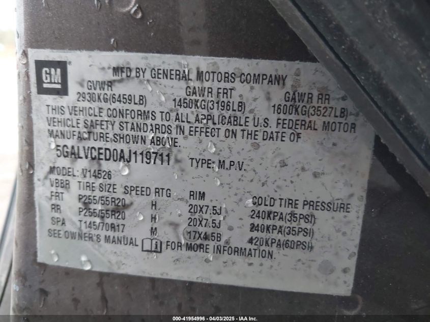 2010 BUICK ENCLAVE - 5GALVCED0AJ119711, колір - Коричневий, 3.6, Бензин, Повний привід із США