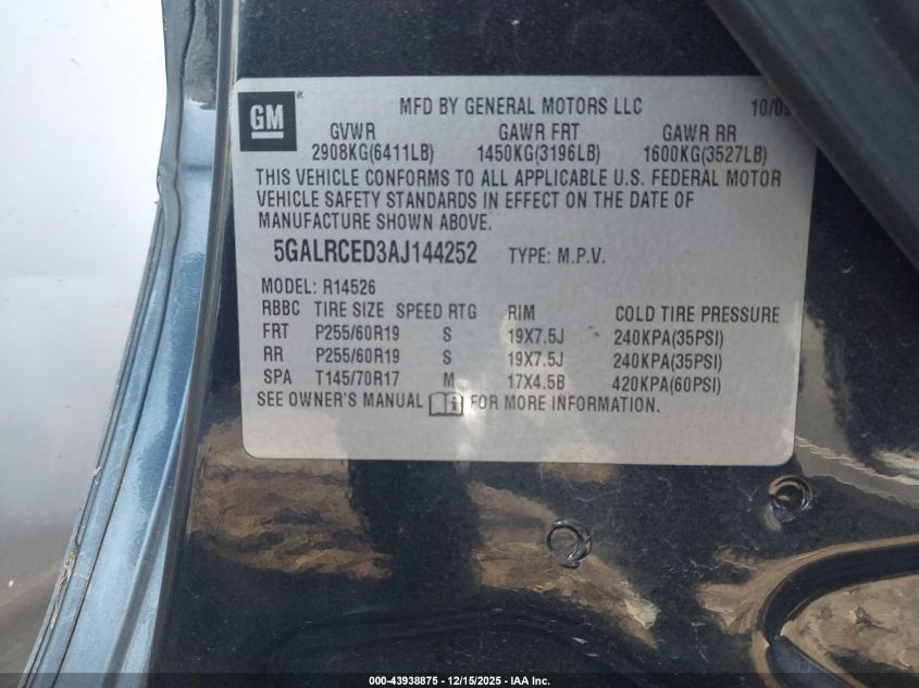 2010 BUICK ENCLAVE - 5GALRCED3AJ144252, колір - Чорний, 3.6, Бензин, Передній привід із США
