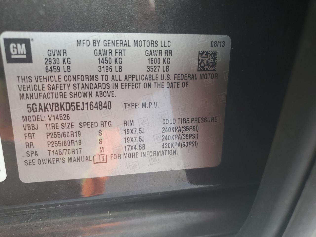 Колір ЧорнийЦиліндри 6Привід Повний привідVIN 5GAKVBKD5EJ164840Стан Заводиться та їде (перевірено)Ушкодження НезначніДата аукціона 2025-10-07