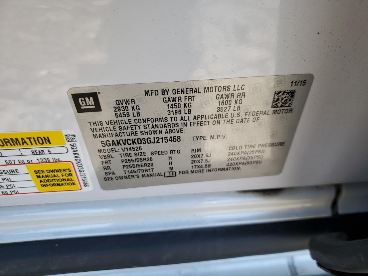 Колір БілийЦиліндри 6Привід Повний привідVIN 5GAKVCKD3GJ215468Стан ЗаводитьсяУшкодження Передня або задня