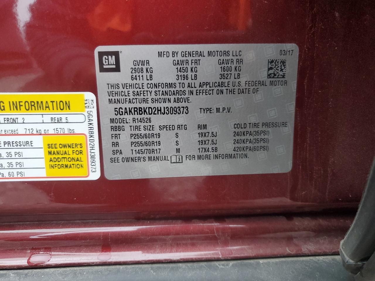 Колір БургундіяЦиліндри 6VIN 5GAKRBKD2HJ309373Стан Заводиться та їде (перевірено)Ушкодження Передня або задня