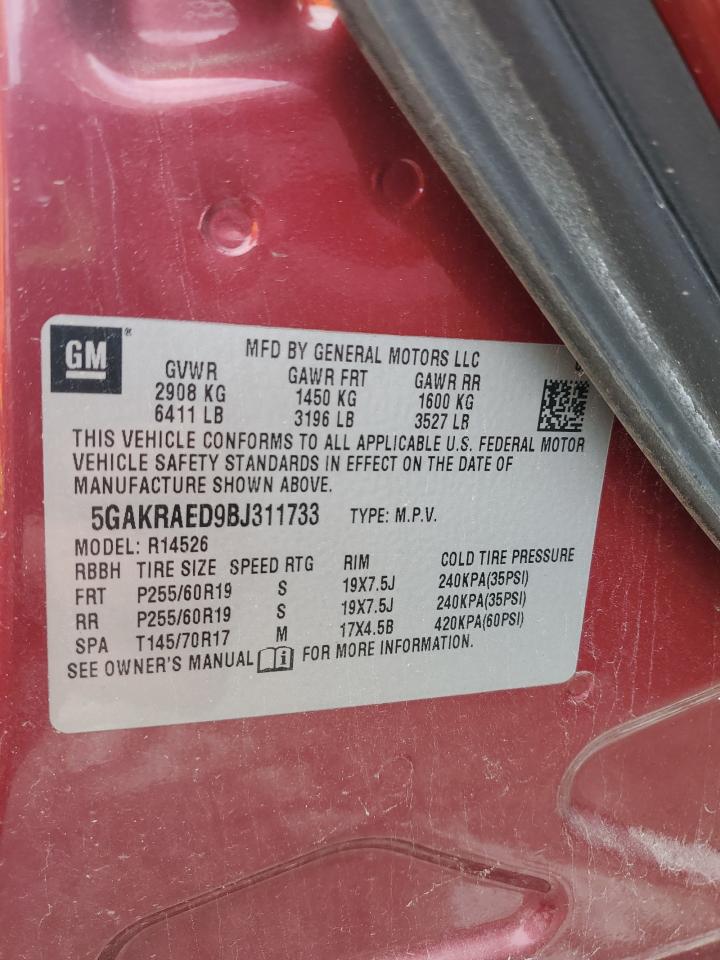 2011 BUICK ENCLAVE - 5GAKRAED9BJ311733, колір - Червоний, 3.6, Бензин, із США