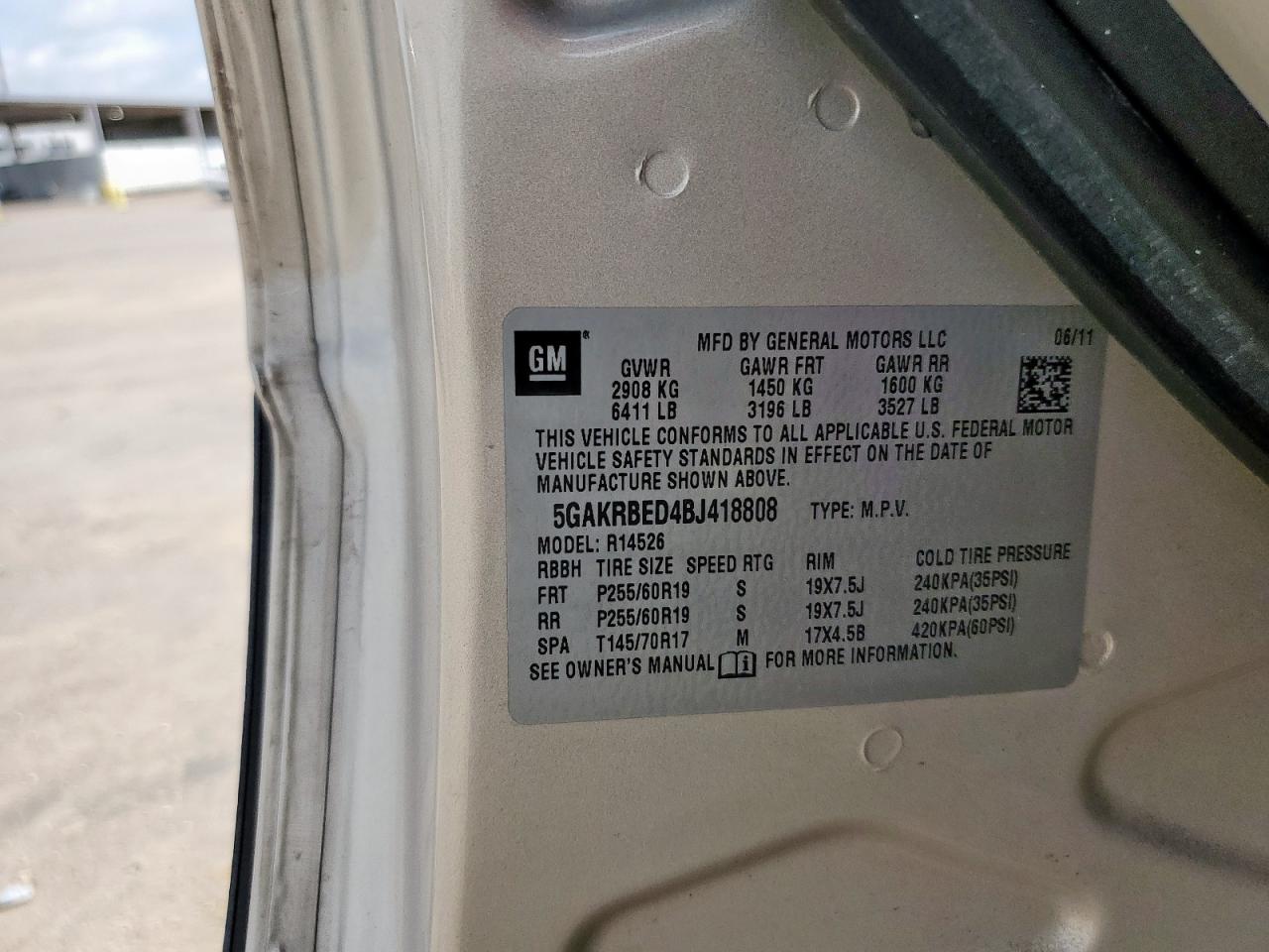 Колір БежевийЦиліндри 6VIN 5GAKRBED4BJ418808Стан Заводиться та їде (перевірено)
