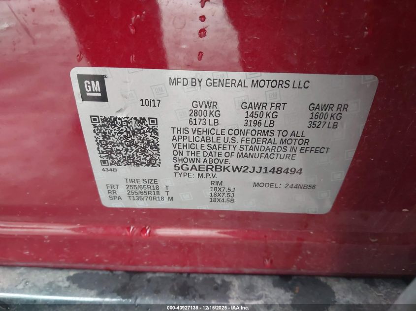 2018 BUICK ENCLAVE - 5GAERBKW2JJ148494, колір - Червоний, 3.6, Бензин, Передній привід із США