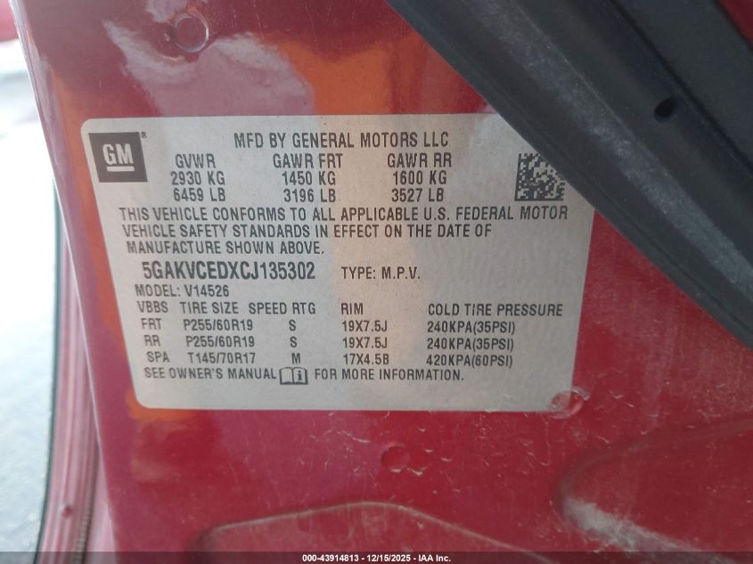 Колір КоричневийЦиліндри 6Привід Повний привідVIN 5GAKVCEDXCJ135302Стан Заводиться та їде (перевірено)Ушкодження Передня або задня