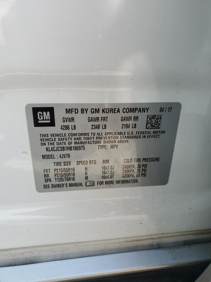 2017 BUICK ENCORE - KL4CJCSB1HB186975, колір - Білий, 1.4, Бензин, із США