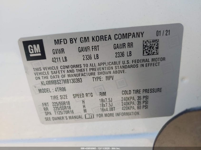 2021 BUICK ENCORE GX - KL4MMBS27MB130393, колір - Білий, 1.2, Бензин, Передній привід із США