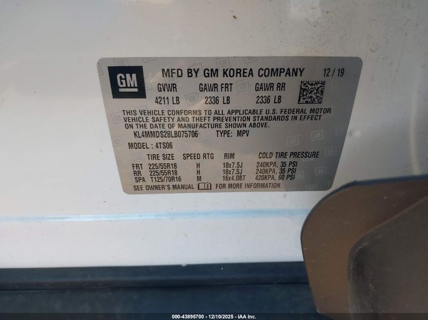 2020 BUICK ENCORE GX - KL4MMDS28LB075706, колір - Білий, 1.2, Бензин, Передній привід із США
