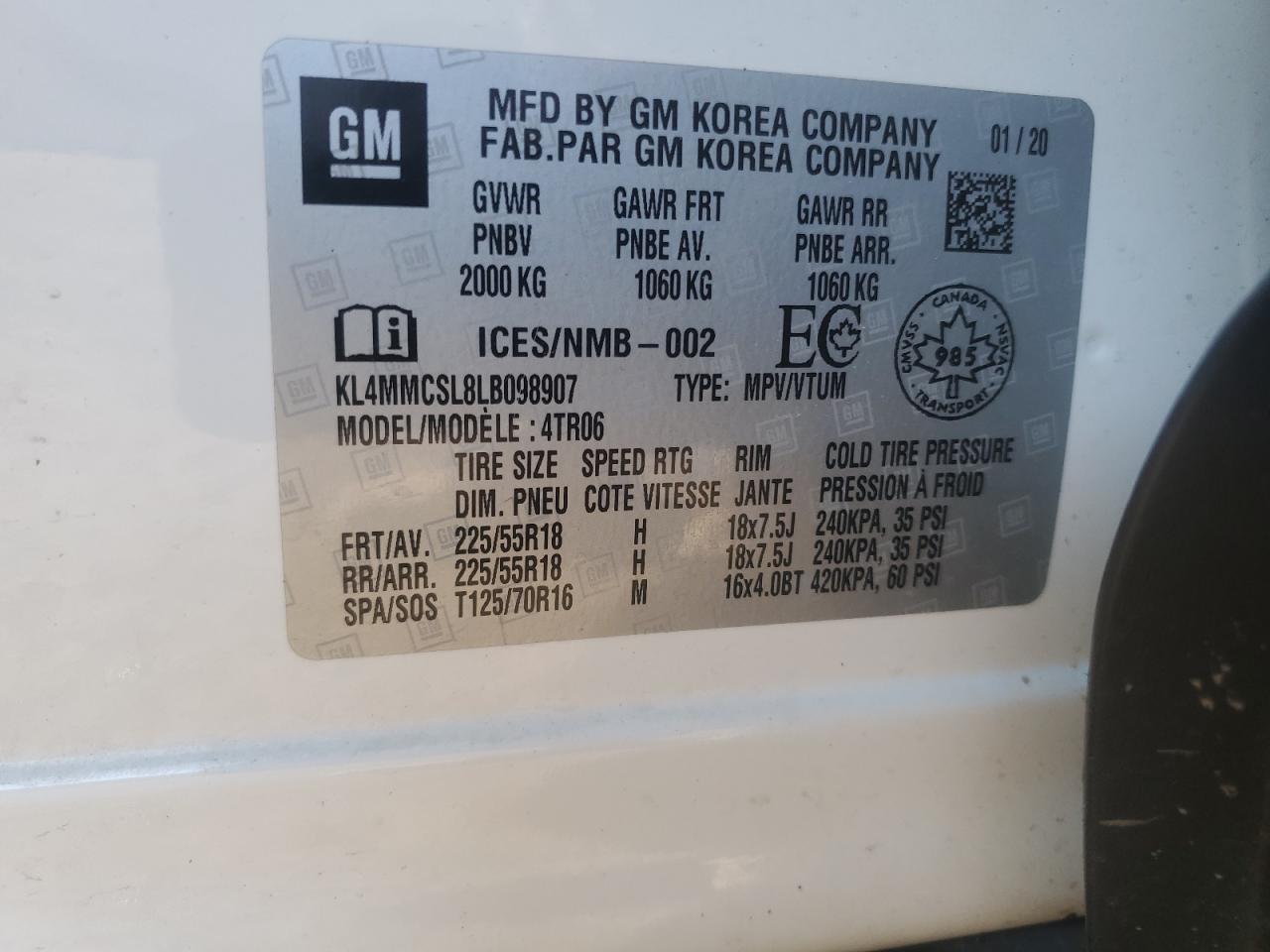 Колір БілийЦиліндри 3Привід Повний привідVIN KL4MMCSL8LB098907Стан НевідомоУшкодження ВодаДата аукціона 2025-10-07