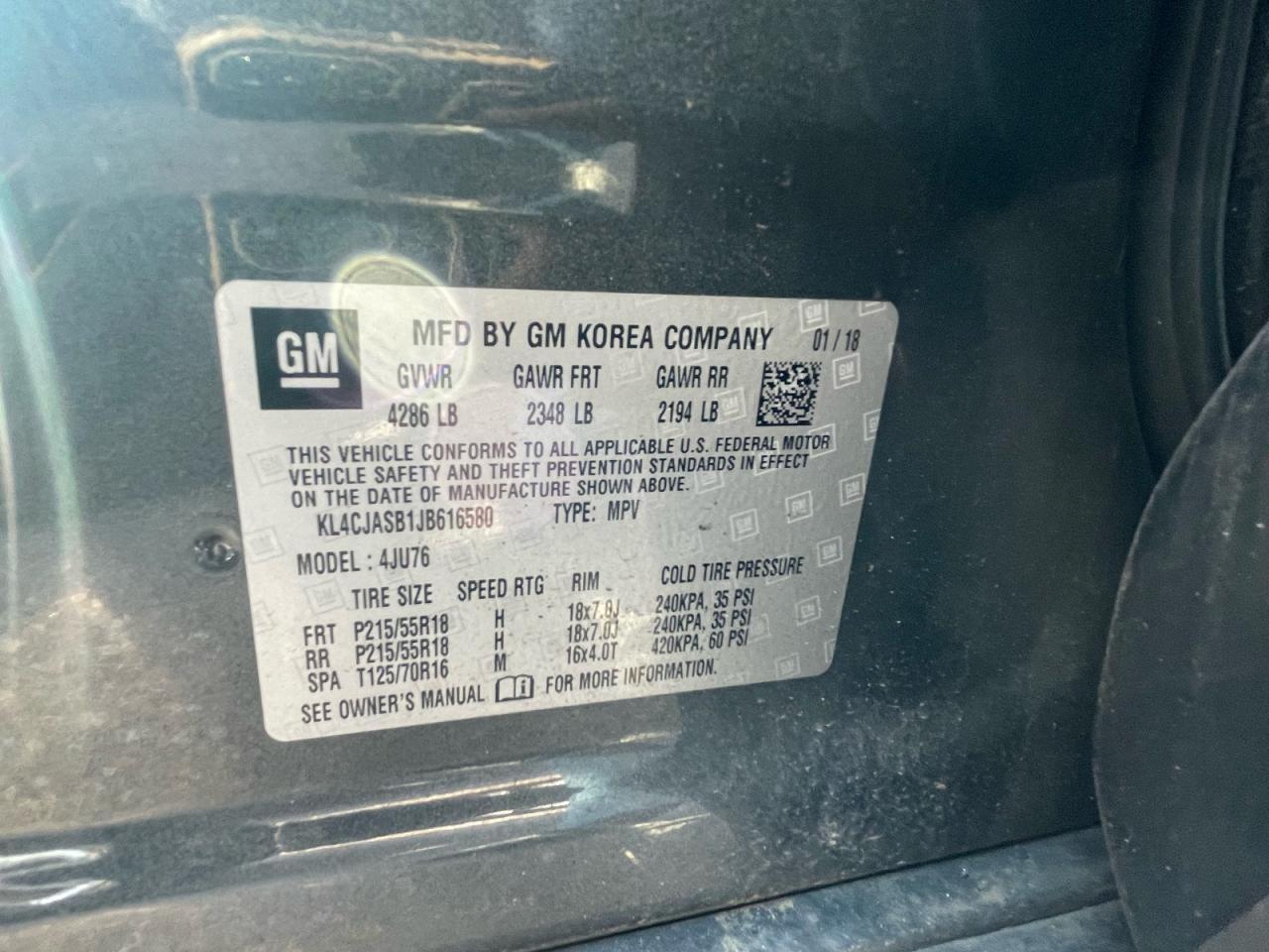 Колір СірийЦиліндри 4VIN KL4CJASB1JB616580Стан НевідомоУшкодження Передня або задняДата аукціона 2025-10-07