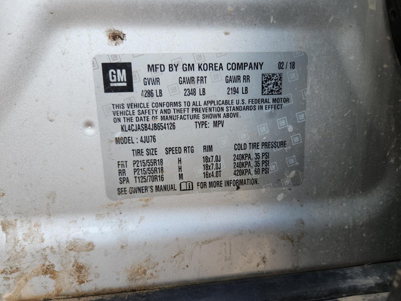 Колір СрібнийЦиліндри 4VIN KL4CJASB4JB654126Стан Заводиться та їде (перевірено)Ушкодження З боків