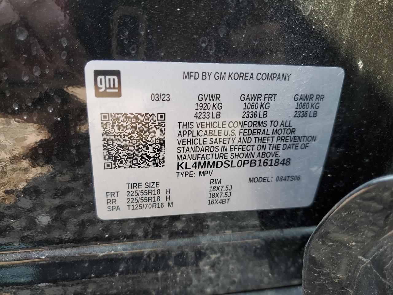 Колір ЧорнийЦиліндри 3VIN KL4MMDSL0PB161848Стан Заводиться та їде (перевірено)Ушкодження Передня або задняДата аукціона 2025-10-07